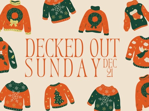 December 21st is Family Worship so deck your whole family out in Christmas gear - anything from fancy dresses to ugly sweaters or ornament earrings - the merrier the better!